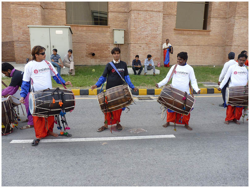 Some 40 people in national costumes were dancing for several hours to music of Dhol, Indian and South Asian popular drums. This instrument is played using two sticks made of bamboo and cane wood. The Dhol is quite famous for its tribal sounds. “When you hear these rhythms, your legs immediately break into dance”, said a performer.