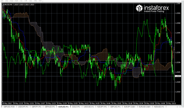 The indicator generates a signal to buy, when the price chart is crossed from the bottom upwards. And, vice versa, it is time to sell when the Ichimoku lines cross the price chart from top downwards.