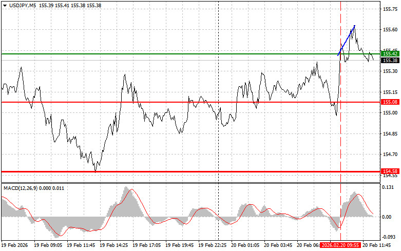 Разбор сделок и советы по торговле японской иенойТест цены 155.42 пришелся на момент, когда индикатор MACD только начинал движение вверх от нулевой отметки, что стало подтверждением правильной точки входа на покупку доллара. В результате пара выросла на 25 пунктов.Вторая половина дня обещает стать по-настоящему насыщенной для участников финансового рынка. Публикация данных по ВВП США за четвертый квартал 2025 года находится в центре внимания. Инвесторы будут пристально анализировать каждую цифру, чтобы оценить устойчивость экономического подъема и его дальнейшие перспективы. Если данные