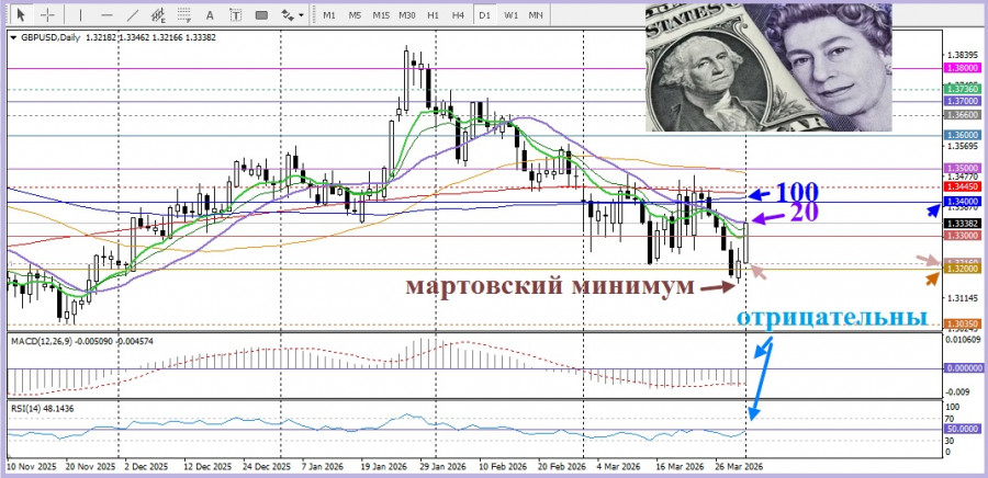 Для фунта дополнительным сдерживающим фактором остается слабость британской экономики: индекс PMI S&P Global UK Manufacturing за март снизился до 51, не дотянув до предварительной оценки 51,4. На этом фоне глава Банка Англии Эндрю Бейли предупредил, что рынки «забегают вперед» в ожиданиях повышения ставок, что подчеркивает неоднозначность перспектив для фунта стерлингов.