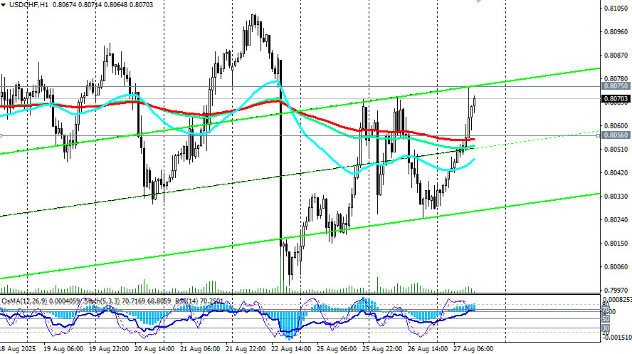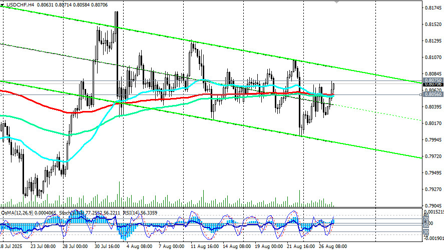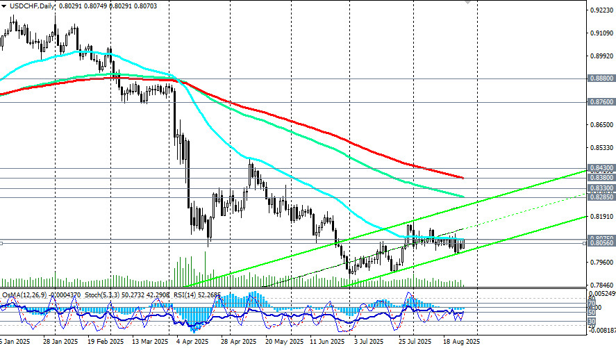USD/CHF демонстрирует рост, поскольку доллар США восстанавливается после пятничного снижения: «голубиные» заявления председателя ФРС Джерома Пауэлла вызвали высокую (около 86%) вероятность более агрессивного снижения ставки ФРС. В то же время, USD/CHF находится под влиянием разнонаправленных факторов, и предстоящие экономические данные будут играть ключевую роль в определении дальнейшей динамики, отметили мы в нашем сегодняшнем фундаментальном анализе и обзоре «USD/CHF: на фоне противоречивых сигналов».